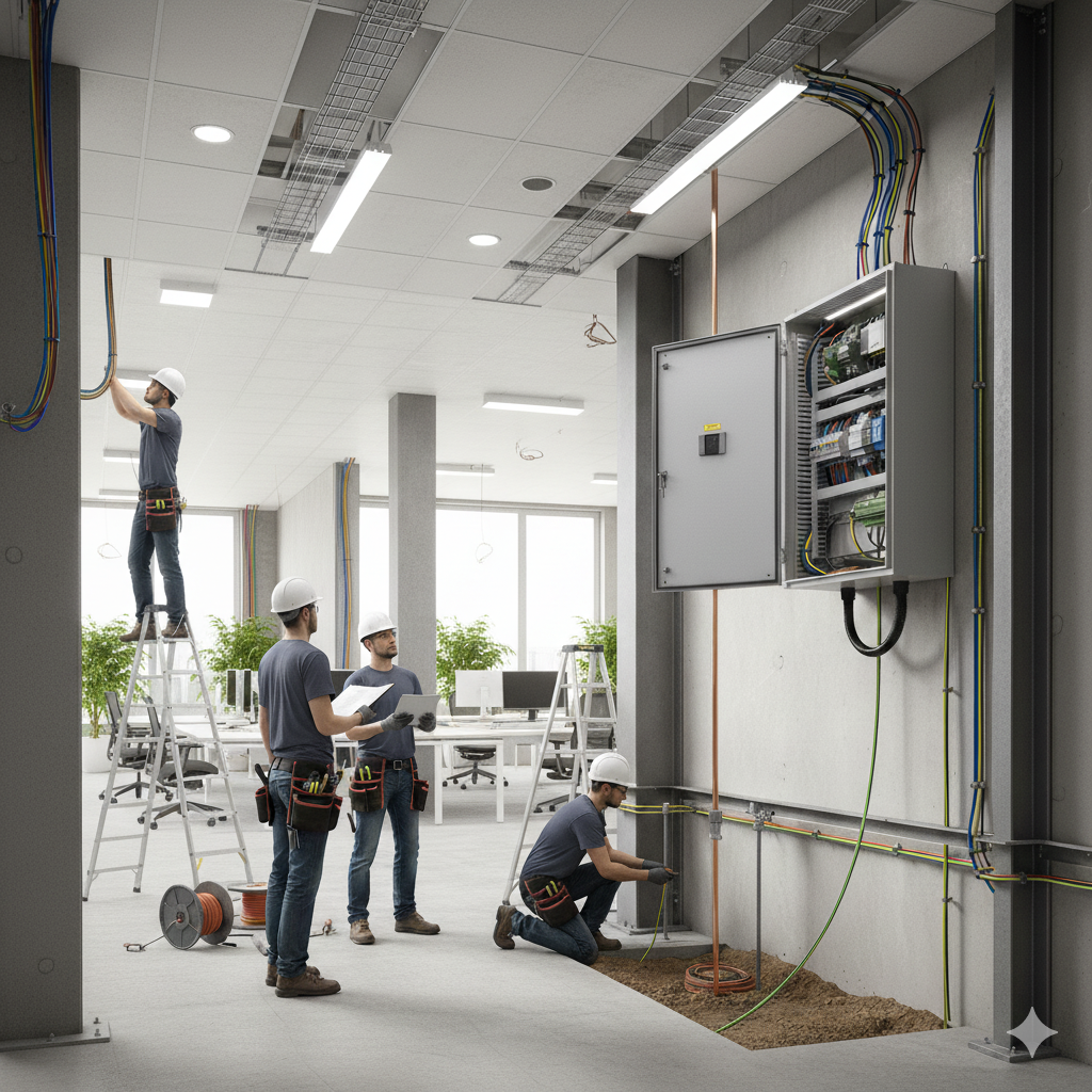 Elektrik Hatları, Bina ve Ofis Elektrik İşleri, Aydınlatma, Hat Revizyonları, Topraklama, Çevre Aydınlatması ve Elektrik Arızalarınızla İlgili Tecrübeli Kadromuzla Hizmetinizdeyiz..